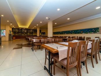 Ещё в работе ресторана хотелось бы отметить явную нерасторопность персонала, убирающих столы. После ухода первой смены обедающих стол может стоять грязным чуть ли не до закрытия ресторана. Чаще сам всё стряхиваешь и идёшь за чистой вилкой.