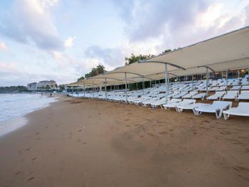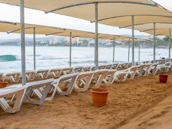 Еще место хорошее, нормальный пляж, лежаки есть, тентов от солнца много и они такие "непрерывные", не зонтики. Удобно в общем.
