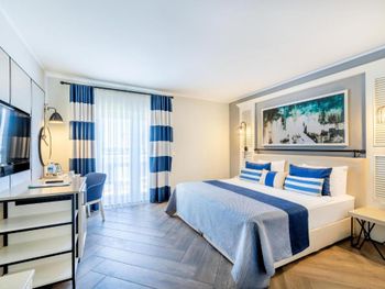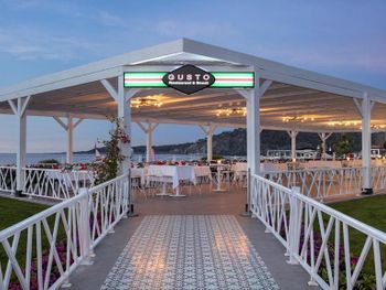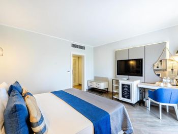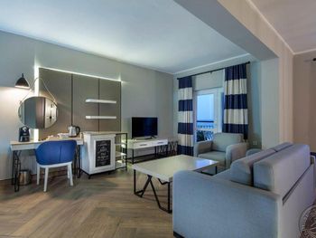 Нужно начать с того, что это отель никак не соответствует 5 звёздам. Максимум 3-4. Кормят просто отвратительно, фрукты грязные, приходилось мыть самостоятельно дополнительно. Каждый обед стоит стена дыма и ужасно воняет скумбрией! Фрукты незрелые, кислые. В номерах нет одеял, только покрывала, на вопрос почему отвечали «такая концепция отеля, он летний». В баре аппероль даже не могли сделать. Вай фай ловит далеко не везде и постоянно обрывается. На весь отель, кстати, нет утюга, только услуги прачечной. А ля карте невкусно и стоит дополнительных денег, как и навязанная за 15$ рюкзак для ребёнка. На рецепшен гостей пускают только на 15 минут, потом приходит охрана и выгоняет, не смотря на то, что они ничего не пили и не ели, а впустить их сложнее, чем в пентагон, пришлось до менеджера достучаться.