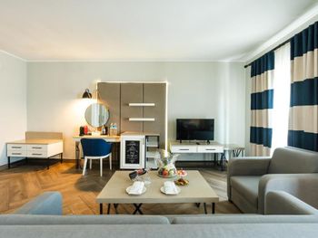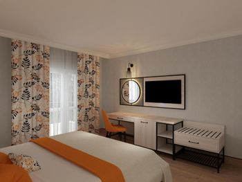 Сам ремонт в номере современный , но настолько простецкий и выглЯдит дешево, стены за день прогреваются , что ночью душно, комнаты маленькие