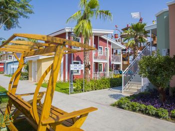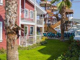 компактная, но очень удобная территория как отеля, так и пляжа. отличное питание, мороженое классное. на ресепшн отзывчивый менеджер. классный аквапарк. отдельные яркие домики.