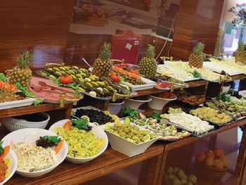 ( консервированные салаты и соления не рекомендую они перебродившие ) , панорамный вид на завтраке отличный .