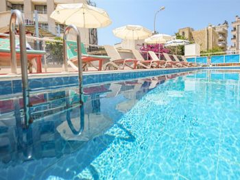 у бассейна зонтики, шезлонги, матрасы: бесплатно