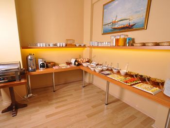 Щоранку гостям подають сніданок "шведський стіл". Закуски та алкогольні і безалкогольні напої можна замовити на терасі.