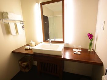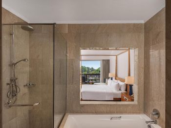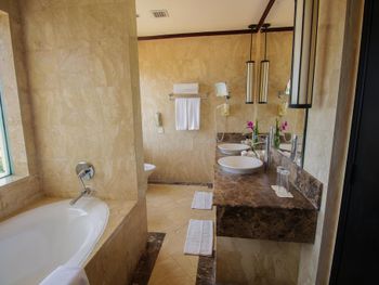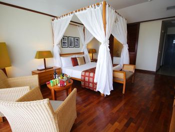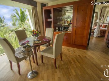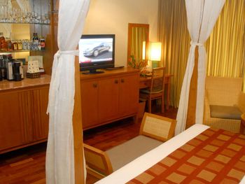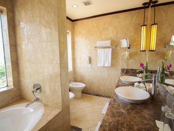 Розкішні номери курортного спа-готелю мають дерев'яну підлогу, кондиціонер, телевізор із супутниковим телебаченням, міні-бар та окрему ванну кімнату з душем і ванною.