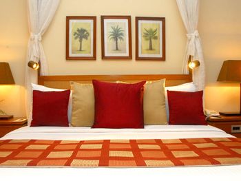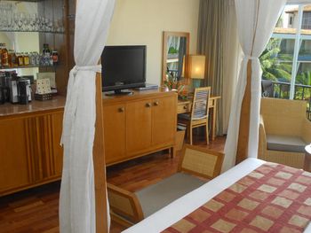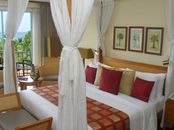 Сделали апгрейд на номер побольше и с большим балконом, иначе доп кровать бы не поместилась. Номер староват, чистый, напор воды хороший, насекомых нет. В отель приезжают пакетные туристы по системе все включено, жить в отеле как мы, только с завтраком, дорого и бессмысленно. Народу в начале января очень много, в основном русские. Есть попытки анимации. Побережье вполне красивое. Для серфинга волны слишком маленькие, а для купания детей большие, но не сильные, купаться можно. Бассейн рассчитан на маленьких детей, не поплаваешь. Большую часть времени натянута сетка для игры в мяч. Можно заказывать еду в номер, работают быстро и хорошо. Лучше отдыхать в несезон, когда отель не заполнен под завязку. Лежаки внутри отеля в тенечке, на пляже ничего нет. Вы сидите за решеткой, тени много от зелени. Про бурундучков здесь уже писали, они даже в номер забегали.