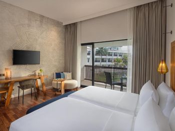 Чисто, ухоженная территория; персонал дружелюбный; симпатичный интерьер в комнатах. Хорошая незаметная уборка. Хороший кофе на завтрак, как из фильтра. Растительного молока нет, шведский стол базовый. В номерах с видом на океан (которые по факту с видом на бассейн и сам отель) будем шумно, так как бассейн работает до 20 вечера. Я спала в берушах. И имейте ввиду, что вокруг отеля ничего нет (для нас это был плюс). Локация подойдет для 3-4 ночей.