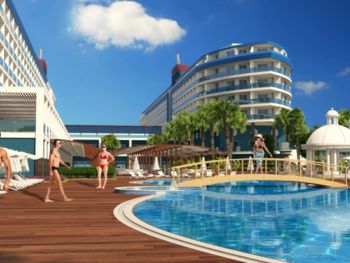 Отличная территория Eftalia Island. Там есть всё: аквапарки взрослый и детский, бассейны, куча ресторанов и тд и тп.