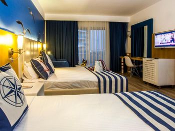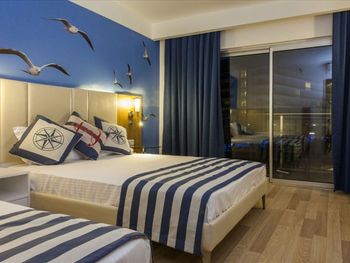 Отдыхали вообще впервые. Отель очень хороший. Семейного типа. Если любите спокойный отдых советую что нибудь другое. Комплекс большой соответственно людей тоже много с детьми. Питание хорошее, но ничего экзотического нет. Выход к морю рядом. Пляж хороший. Вход справа каменистый только в обуви можно. Слева вход хороший. Лежаков не всегда хватает. Отдых замечательный. Если хотите что то необычного как катамаран, банан, хамам и другое денег с собой нужно много всё от 25 евро. Покупать в отеле или рядом с ним на рынке не советую, дорого, на рынок в город будет выгоднее. У моего сына испортился надувной круг и очки для плавания. В отеле отдали 25 евро. Сам отель чистый и аккуратный, но люди иногда так гадят это ужас. Я бы штрафовала таких отдыхающих.