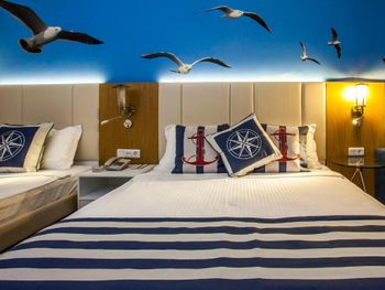 У помешканні Eftalia Marin Resort номери устатковано кондиціонером, робочим столом, телевізором із плоским екраном та окремою ванною кімнатою. Гостям надаються рушники та постільна білизна. З балкона відкривається чудовий вид на море. Номери оснащені сейфом, а певні одиниці розміщення мають красивий вид на місто. Усі номери устатковано шафою та чайником.