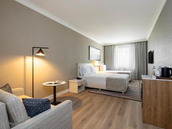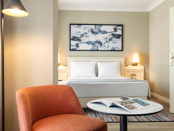 Номер был маленький и тесный. Я просил предоставить номер для некурящих, получил прокуренную душную комнату. Хорошо, что был балкон и можно было проветривать помещение. Хотя этот самый балкон был грязным, а соседний балкон завален окурками. Мне предложили поменять номер на этом же этаже, но я отказался, потому что весь этаж пропах никотином. Завтрак отвратительный. Выбора никакого. Фитнес центр и бассейн почему-то открывались только в 2 часа дня. Утром до завтрака я даже не смог позаниматься в фитнесе и поплавать в бассейне. А в 12 часов уже надо было уезжать. Цена и качество не совпадают.
