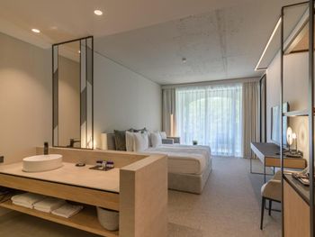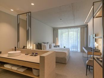 Неплохой номер , мы брали Делюкс с одной кроватью .. Чисто , довольно стильно. Кровать очень удобная . Терраса.,мини бар , кофе и прочее.