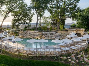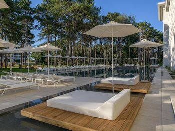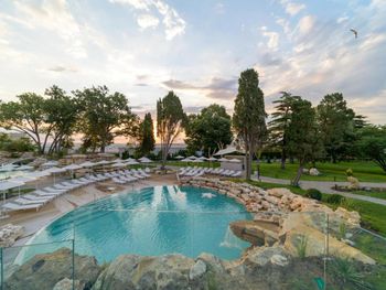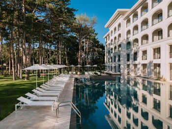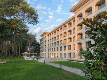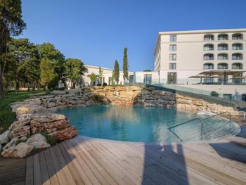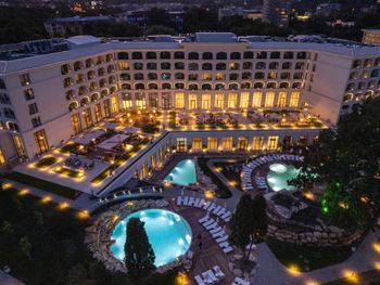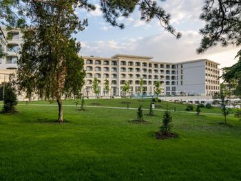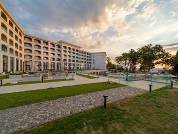 Прекрасный спа-отель с комплексом бассейнов с минеральной водой : с тёплой водой и с холодной, большие бассейны и маленькие, в помещении и под открытым небом! Можно отдыхать в любое время года, бассейны и спа с 8 до 20:00. Чисто, идеально ухоженная территория, рядом пляж. И это всё в 15 минутах на машине от центра Варны. На территории есть рестораны. Нам очень понравился ресторан японской кухни. В итальянском вкусная пицца. Ценник не выше чем в центре города. Есть платная парковка.