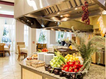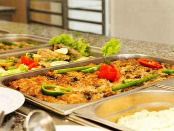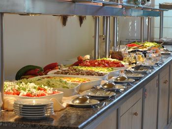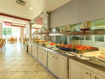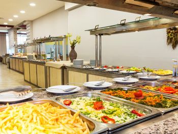 Убогий шведский стол. Как по ассортименту, так и по качеству. Невкусно и все холодное, разогревать еду персонал откровенно ленился. Вино и пиво тебе нальют только если кто-то из персонала случайно окажется за стойкой, а такое было не всегда. Соки порошковые, по сути это вода с привкусом фруктов. Можно отметить лишь супы, они немного улучшали впечатление. Как и кофе-машина.