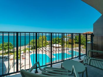 Очень удобное местоположение. Хороший вид на море с номера. Очень приличный завтрак.много блюд и разнообразие вариантов еды.