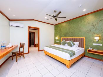 Выбрали этот отель по хорошим отзывам и из-за близости к Мале и возможности снорклинга на домашнем рифе. Это была огромная ошибка! Риф бедный, остров по меркам Мальдив некрасивый ( мы были много раз), мягкого песка почти нет- битые кораллы и на пляже и при заходе в воду, океан мелкий (по колено) на всех пляжах, и мутный во второй половине дня, водоросли. Номера убитые, внутри воняют, находиться нельзя. Много комаров и песчаных мух, после обеда на воздух не выйти- съедают живьем. Но самый ужас-это ресторан ( брали полупансион). Ассортимент на ужин- три вида макарон и рыба с костями, на завтраке только выпечка и омлет съедобны. Все абсолютно невкусно. Персонал ресторана не здоровается вообще. За нами на весь отпуск закрепили официанта- огромный такой мужчина. Так вот он делал замечания нам по поводу того, что мы не доедаем эту бурду полностью. Проверял и комментировал содержимое тарелок. Иногда забирал тарелку из которой ешь (видимо решал, что хватит). Дошло до того, что поход в столовую стал пыткой, о короткой думаешь с ужасом заранее. Думаю, менеджмент отеля знает об этой ситуации, может даже он и инструктирует стафф для экономии, потому что тут экономят абсолютно на всем- бумажные салфетки, мыло, даже туалетная бумага! Думайте дважды, лучше трижды, прежде чем выбрать этот остров. Мы уехать раньше не смогли, как сделали бы в другом месте- трансфер оплатили заранее по прибытию на дату к вылету, и билеты на самолет уже были куплены.