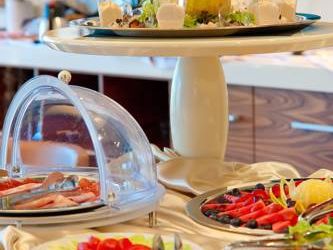 В зоне шведского стола не хватает нарезки сыра, колбасы, фруктов и хлеба. Как для человека который не ест яйца, кушать было нечего.
