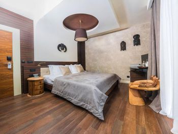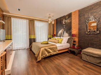 На гостей чекають цікаво прикрашені номери, які оформлені у стилях різних країн, міст та континентів: Африка, Індія, Дубаї, Японія і Китай. Тут можна повністю розслабитися і насолодитися теплою та дружньою атмосферою.
