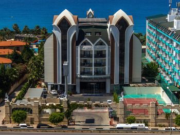Курортний готель Galeri пропонує сучасні номери з безкоштовним бездротовим доступом до Інтернету (Wi-Fi) на березі моря разом з 2 басейнами та водними гірками. Він розташований на відстані 35 км від Аланії, за декілька хвилин ходьби від пляжу.