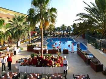 У критому та відкритому ресторанах готелю подають страви турецької і міжнародної кухні. Гості зможуть також спробувати легкі закуски у снек-барі або американському барі.