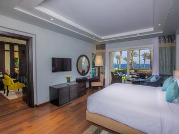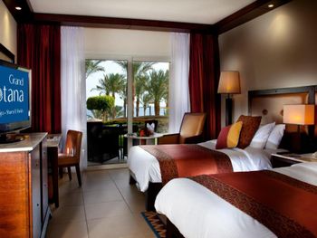 Світлі та просторі номери спа-курорту Grand Rotana обставлені сучасними меблями та оснащені телевізором із супутниковим телебаченням та безкоштовними засобами для приготування чаю і кави. Із помешкань відкривається вид на сади, басейн або Червоне море.