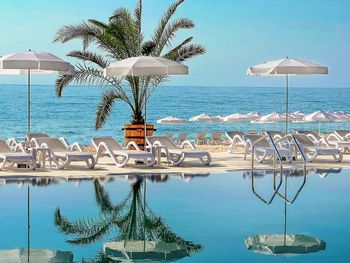 на пляже зонтики, шезлонги: бесплатно (ограниченное количество)