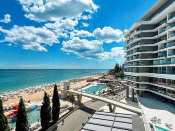 в курортном комплексе Золотые пески, в 30 км от аэропорта города Варна, в 147 км от аэропорта города Бургас, в 900 м от центра курорта и в 10 м от пляжа.