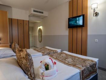 В целом отель оставил приятное впечатление. Современные и чистые номера, хорошее расположение — до моря около 10 минут пешком. Еда вполне неплохая, хотя, по нашему мнению, уровень сервиса и удобств всё же не дотягивает до заявленных 4 звёзд (при том, что мы не привередливые туристы).
