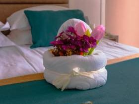 1. Когда мы подошли к стойке регистрации, чтобы попросить заменить полотенца, девушка не очень хорошо нас поняла и мужчина сбоку предложил перевести. Мы попросили два пляжных полотенца и заменить обычные, этот человек не стал переводить, а в грубой форме нам отказал и на вопрос «почему» ответил «у вас какие то проблемы? Потому что». Позже девушка извинилась и выдала нам полотенца. Оказалось, что то хамло - это хозяин отеля. Максимально неприятная ситуация, после которой мы ни за что не вернемся.