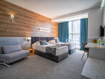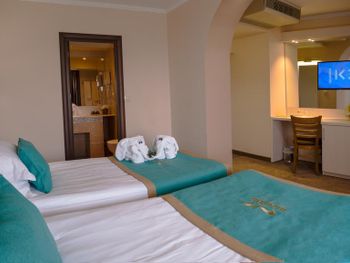 Кухня в отеле просто отличная, большое разнообразие сыров,мяса,салатов. Вся еда была очень вкусная и не повторялась.Очень понравилось что бар тоже включен в All Inklusive. Возле бассейна дежурит спасатель. Уборка номеров каждый день,замена полотенец и постельного регулярная. Весь персонал вежлив и отзывчив. Отдельное спасибо администратору на ресепшен Евгению,в день отъезда мы очень переживали за наших родных,так как они люди в возрасте и им надо было добраться до остановки,откуда отправлялся их автобус,он вызвал такси,и они смогли без проблем добраться до этого места.