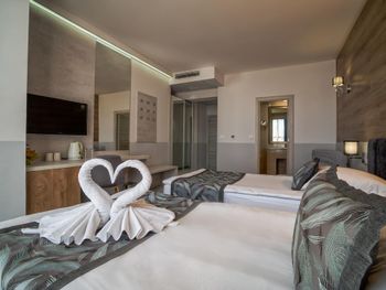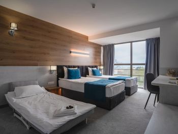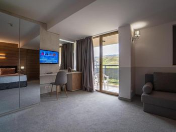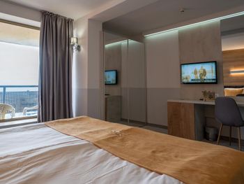 Из минусов: были серьёзные неудобства с кондиционером. Он постоянно отключался при открытии балконной двери, включить его самостоятельно было сложно, регулировать температуру нельзя — приходилось каждый раз звонить на ресепшн. При этом дверь на балкон закрывалась неплотно, и кондиционер просто не работал. Это сильно портило впечатление, особенно в жару.