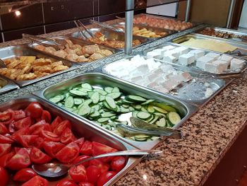 Еда без изысков, но всегда свежая и есть, что выбрать, много фруктов и овощей