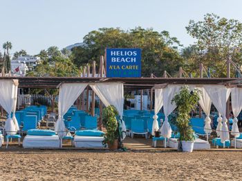 Гості можуть оглянути пам'ятку "Пляж Кумкой" за менше ніж 1 км від помешкання Helios Hotel. Відстань від помешкання до аеропорту (Аеропорт Анталія) становить 66 км. Гості можуть скористатися платною послугою трансферу з/до аеропорту.