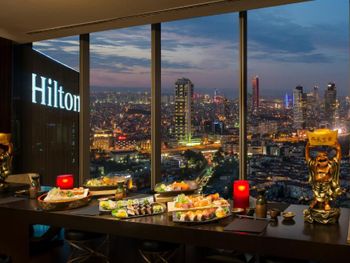 Located on the 34th floor of Hilton Istanbul Bomonti, Cloud 34 offers an unforgettable experience with its stunning views of Istanbul and the Bosphorus, along with its East Asian cuisine and world-class drink options. On the same floor, the Executive Lounge provides a comfortable atmosphere with continental breakfast and light evening buffet, along with special check-in and check-out services. The operating hours of Executive Lounge are from 6:30am until 11:00pm. Enjoy an elegant residential feel in the Grand Lobby & Bar with a large central fireplace and careful seating arrangements, or relax on the large outdoor terrace overlooking the garden. The menu offers a large variety of quality coffee and tea, fresh juices, and pastries, alongside a simple menu of salads, sandwiches, and small plates. The Grand Lobby is an ideal space for any social occasion throughout the day and evening.