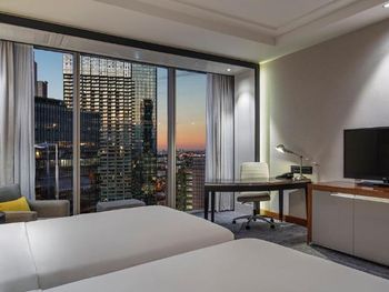 Самый главный минус это персонал, полная неадекватность и я бы сказал тупость. В баре 34 этаж никогда никого не дождёшься, на ресепшине постоянные очереди, чтоб попросить об уборке номера надо стоять в очереди с заселяющимися, людей постоянно нет, праздно шатаются. Номер чистый, но качество полотенец дно, для Хилтона. Чтобы куда-то дозвонится и заказать опцию целая история.