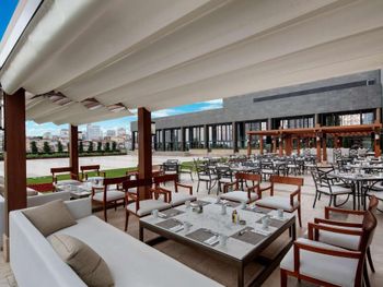 "Бойцовский клуб" на завтраках: ресторан не справляется! Сначала вы мученически пытаетесь добыть еду (да, ковидные ограничения сейчас в отелях всего мира, но где нормальная организация процесса?) - общаясь через ленту с абсолютно необученными сотрудниками, которые не владеют даже базовым английским! А потом вы будете долго искать свободный столик, т.к. гостей в разы больше, чем столов. Но и это не финал истории - после того как вы нашли место, вы будете вынужденно сами (!) решать вопрос с уборкой посуды, которая осталась после предыдущих гостей, разыскивать приборы, сами (!) идти к стойке за заказом кофе - иначе вы просто не дождетесь официанта, и даже если он к вам подойдет - и вы сделаете заказ, вероятность того, что он вернется к вам хоть когда-то почти 0.