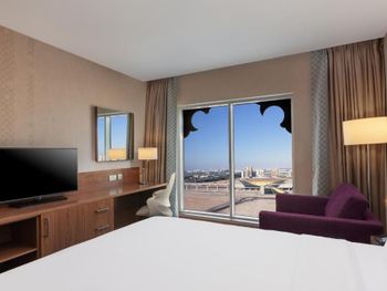 По расположению плюс , что метро в 2 минутах, а на нем уже и в центр и в аэропорт можно. Кстати из аэропорта сюда я на такси ехала 50 дирхан, а обратно я на метро поехала и всего 5 дирхан заплатила. Сам отель мне понравился. На верхнем этаже спортзал, туда каждый день ходила, там же бассейн, не глубокий ,правда. Номер хороший, уборка каждый день, беспл 2 бутолочки воды, чай, кофе. В номере есть сейф, утюг, фен, в ванной мыло, шампунь, кондиционер, увеличивающее зеркало с подстветкой. Персонал приятный. Завтраки не сильно разнообразны, но выбрать можно что нибудь.
