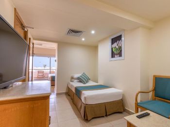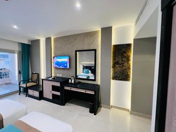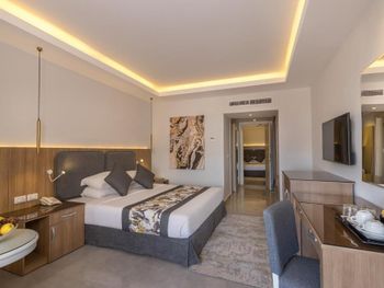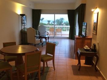 Грязный номер при заезде. Клубы пыли, походили 5 минут босиком по номеру, оказались как на стройке (фото прилагаю). Унитаз уже имел течь и лужу вокруг. Ванных принадлежностей не было. Не было инструкции к сейфу и лампочки в гардеробной. Сидели 1 час в номере и ждали по очереди всех специалистов отеля. Первый замазал течь в туалете (спустя 3 дня опять потек), второй поменял лампочку, третий показал как запрограммировать сейф, и, наконец, четвёртый помыл пол. Помыл по-египетски - только в самой ходовой зоне номера.