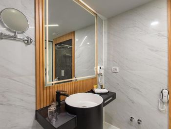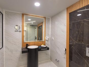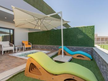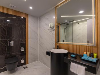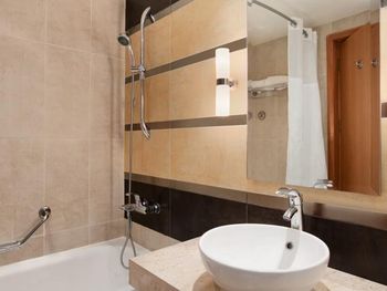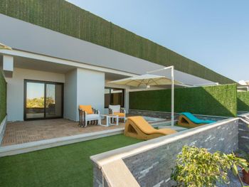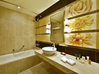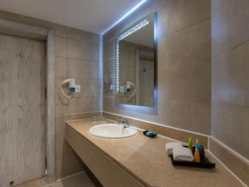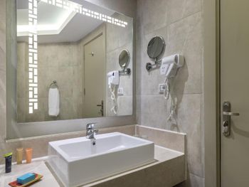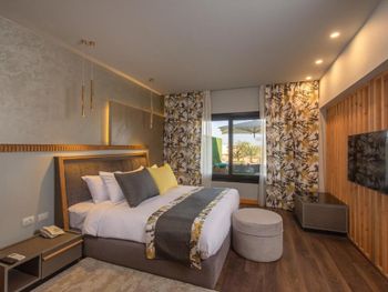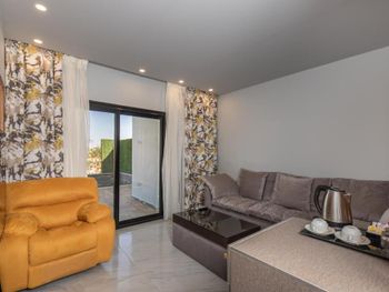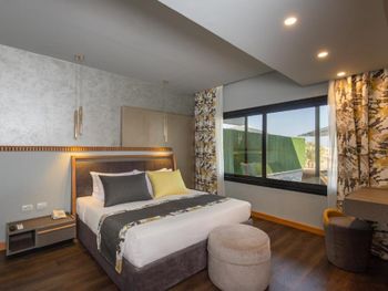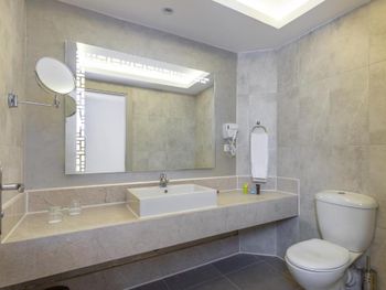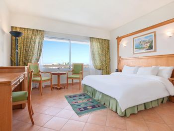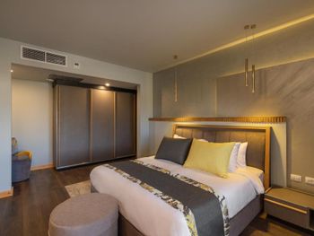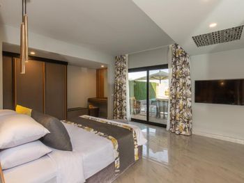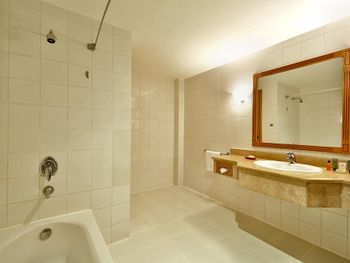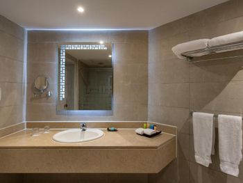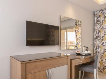 A pool or garden view can be admired from the balconies. Each guestroom features a 40-inch TV and a minibar. Many have a seating area with a sofa and all have a modern bathroom.