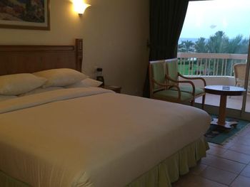 Большой отель, отдыхали в основном местные (думаю из-за Ковида), останавливались в номере на троих в двухэтажном здании, две комнаты, балкон, терасса с двумя шезлонгами. В номере чайник, приносили воду, фрукты. Персонал приветливый. На территории пляж песчаный, довольно мелко, но есть небольшой кусочек с пирсом и небольшим рифом. Брали уроки виндсерфинга. Идеальное место попробовать, мелко, песок и каждый день ветер. Питание многообразное, но без изысков, очереди за едой, несмотря на ковид, отель заполнен полностью. На 5 ку точно не тянет. Но вполне себе не особо требовательным путешественникам. Мы были два дня, ждали дайв- яхту. Без проблем отель организовал поздний чек- аут