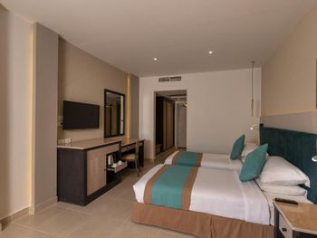 With its private beach overlooking the magnificent Red Sea, Hurghada Long Beach Resort features a lagoon-style pool, Aqua Park water slides ( For Adults Only with minimum height of 130 CM ) and a fitness centre. The bright, spacious rooms have a private balcony.