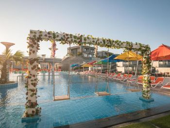 Гостиница хорошая. Прекрасный красивый главный бассейн с зеленой территорией. Большой просторный пляж. Оооочень много шезлонгов. В любое время приходя на пляж всегда можно было найти удобное для себя место. Есть качающиеся кровати на пляже. Подремать днем на них - приятное удовольствие.