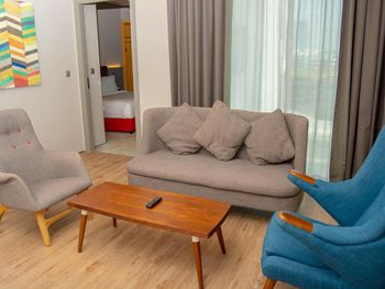 В номере отсутствует дневной свет, тк затонированное окно выходит в лобби отеля, сначала это не напрягает, но под конец отдыха стало довольно некомфортно.
