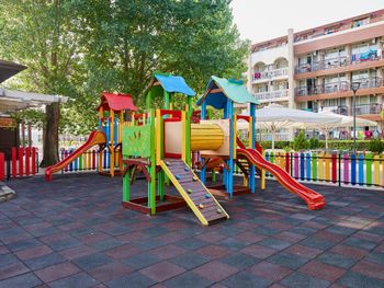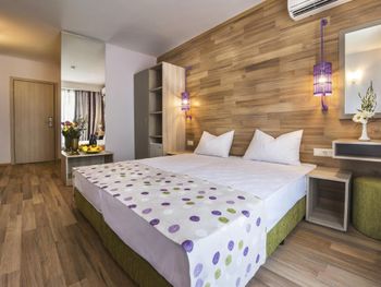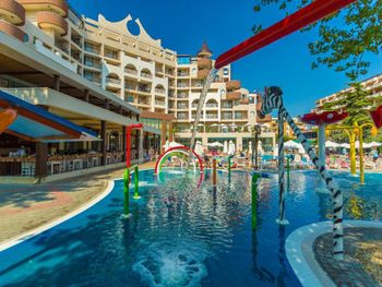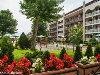 Красивая территория, в номерах чисто, убирают каждый день. До пляжа близко, при этом около отеля остановка туристических трамвайчиков в Старых Несебр и по Солнечному берегу, вокруг рестораны и магазины. Два ресторана со шведскими столами, из-за этого нет большого скопления людей и всегда есть выбор свободных мест. Персонал отзывчивый, быстро реагируют на просьбы.