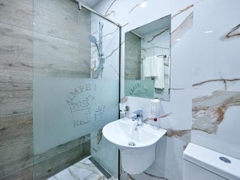 В душе нет полотенец для ног. Нет стаканчика для зубной счётки.