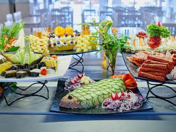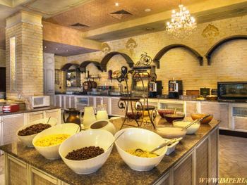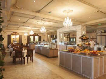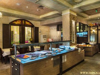 Еда в ресторане - это песня! Качество, вкуснота и разнообразие просто потрясают. На любой вкус. Мясо всех видов, морепродукты каждый день. Гигантский выбор салатов и сладостей. Никаких пустых блюд. Всё постоянно подносится и пополняется. Официанты - душки.