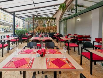 Даже сказать нечего. Цена высокая, взяли люкс - полуподвал, грязно, пауки, тесно, нет ванных принадлежностей. Еда - ужас!!!! Вилки грязные! Никому не рекомендуем этот горе-отель