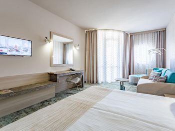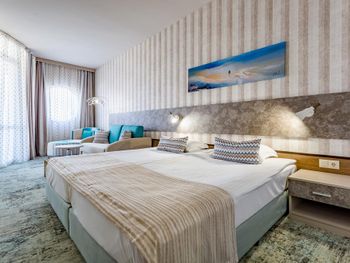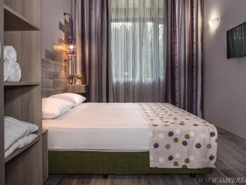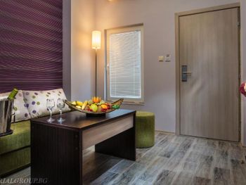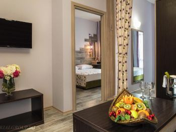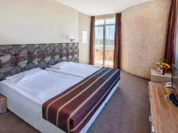 Жили в номере делюкс. Все понравилось. Номер росторный и очень уютный. Отель произвел приятное впечатление , территория не маленькая, как обычно в болгарских отелях, хорошее вкусное питание, была и форель, и баранина, кролик, кальмары. Все вкусно. На баре оригинальные спиртные элитные напитки, кому интересно.
