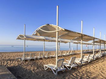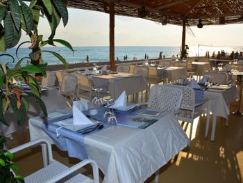 Отель не новый, но все есть. Просторный чистый номер с большим балконом, очень комфортные кровати, малышу предоставили детскую кроватку-манеж, в минибаре безалкогольные напитки в стекле. Бесплатная сауна (две парные и хамам) которой можно воспользоваться 19.00. Амфитеатр и детская площадка находятся на пляже чуть дальше от отеля, что создаёт комфортные условия для отдыха в номере.
