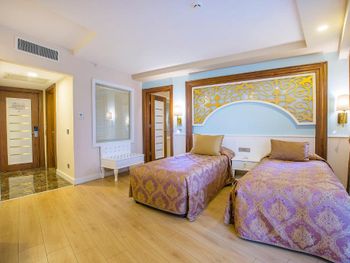 Надо срочно менять весь персонал поваров, испортили все элементарные блюда, салаты, гарниры - рис, булгур были как каша переваренные, комками, картофельное пюре измельчили до состояния клея, брокколи переварили, яйца старые, у 8 мес.малыша сразу пошла аллергическая реакция на желток, хотя ест не первый раз, несколько раз срыгивал еду, появилась диарея. Несварение было и у меня с мужем. При том что концепт Ультра все включено импортного алкоголя нет вообще, в барах очень маленький выбор алкоголя. В номерах в ванной было только жидкое мыло в дозаторах, шампуня и кондиционера-ополаскивателя не было, возможно не дали, мы не спрашивали. Заметила что на аквапарке не было спасателя-смотрителя, что немаловажно так как дети бегут друг за дружкой, спускаются с горок не дожидаясь пока перед ними спустятся и отплывут другие, это может быть травмоопасно.